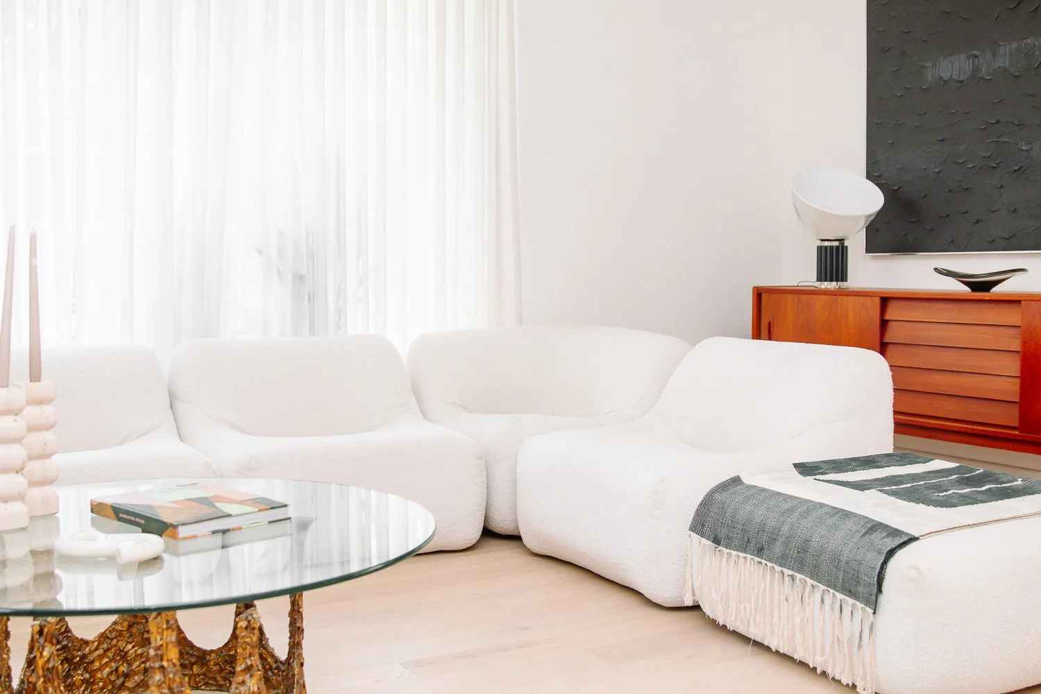 This beautifully curated home-turned-studio belongs to the co-owner of Winnipeg interior design company Design Shop, Debbie Golub. Softspace offers a unique space that feels elegant yet laid back. My client remarked that Softspace felt a bit like being in Tulum, which Debbie was delighted to hear since the iconic Mexican destination was indeed an inspiration. This space is a treat to shoot in, with its natural lighting, modular couch, fireplace, chic dining area, open kitchen, hidden reading nook, sun room, and outdoor pool!